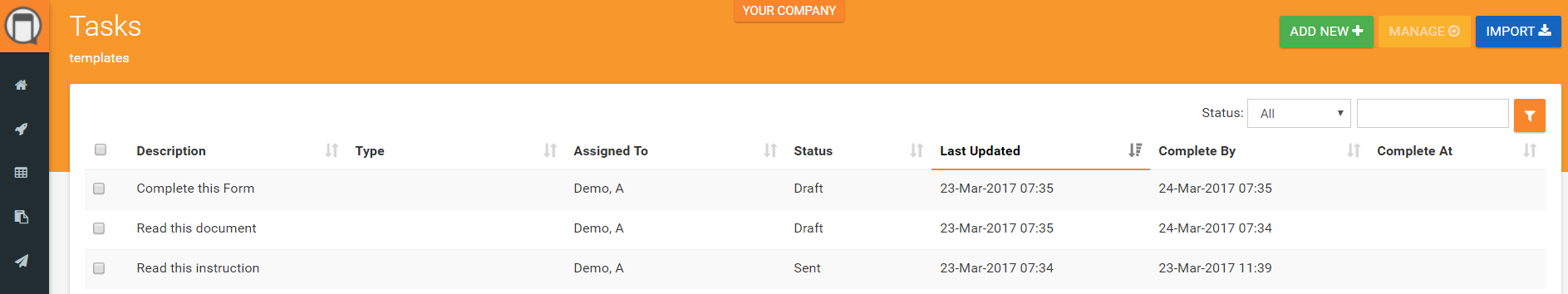 - Instruction - a free text instruction that must be checked off by the assigned user.